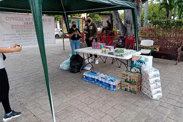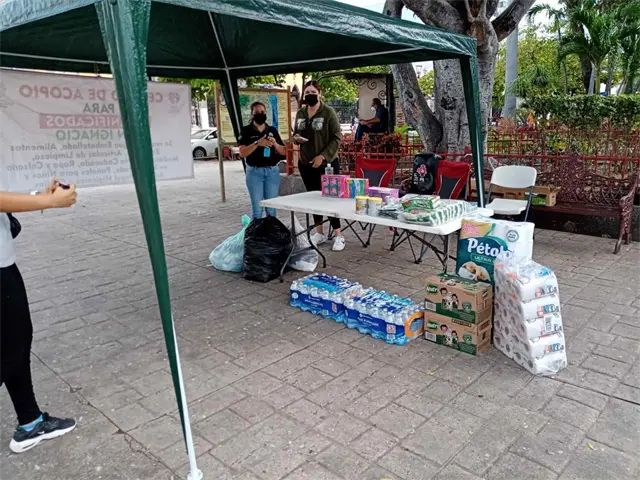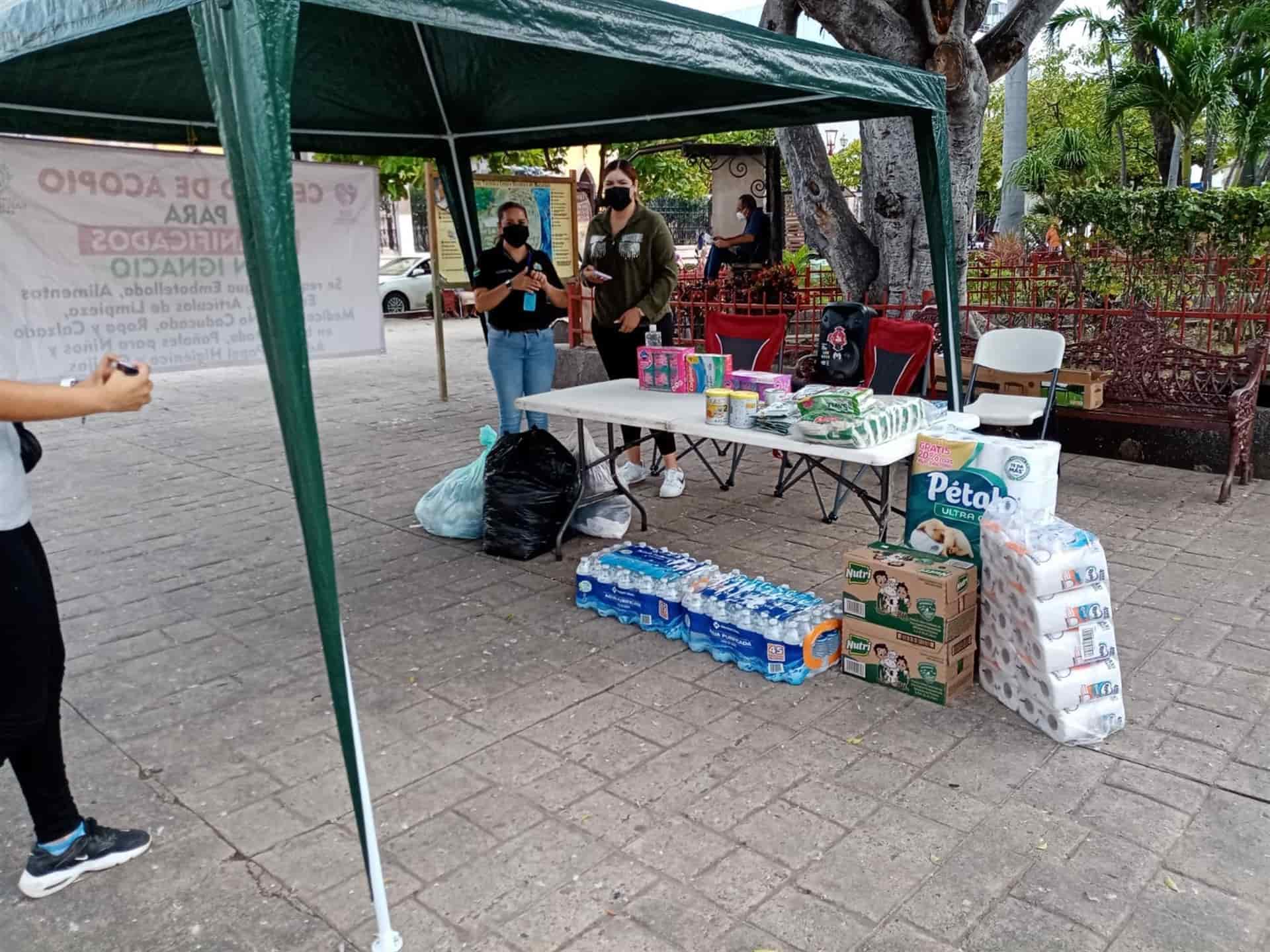 Mazatlán, Sin.- Autoridades municipales de San Ignacio, instalaron un centro de acopio en la Plazuela República en Mazatlán para solicitar el apoyo de la población.