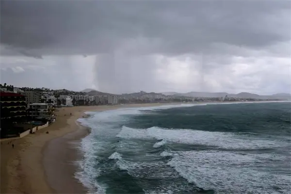 «Sus bandas nubosas producen lluvias intensas en Baja California Sur e intervalos de chubascos en Sinaloa y Nayarit», informó el Meteorológico en su reporte más reciente.