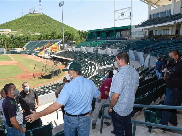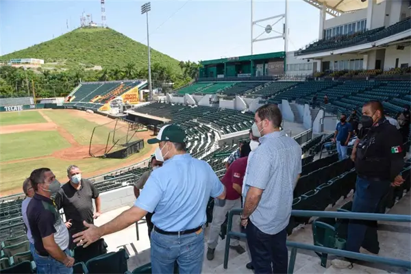 Los Mochis, Sin.- Autoridades municipales y directivos del Club Cañeros, realizaron un recorrido de inspección por las instalaciones del estadio Emilio Ibarra Almada, donde se hizo una propuesta para que se cumplan los protocolos sanitarios ante el Covid-19, lo que permitirá que se pueda tener público durante los juegos de la próxima temporada de béisbol.