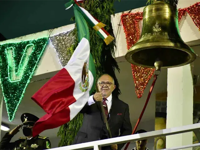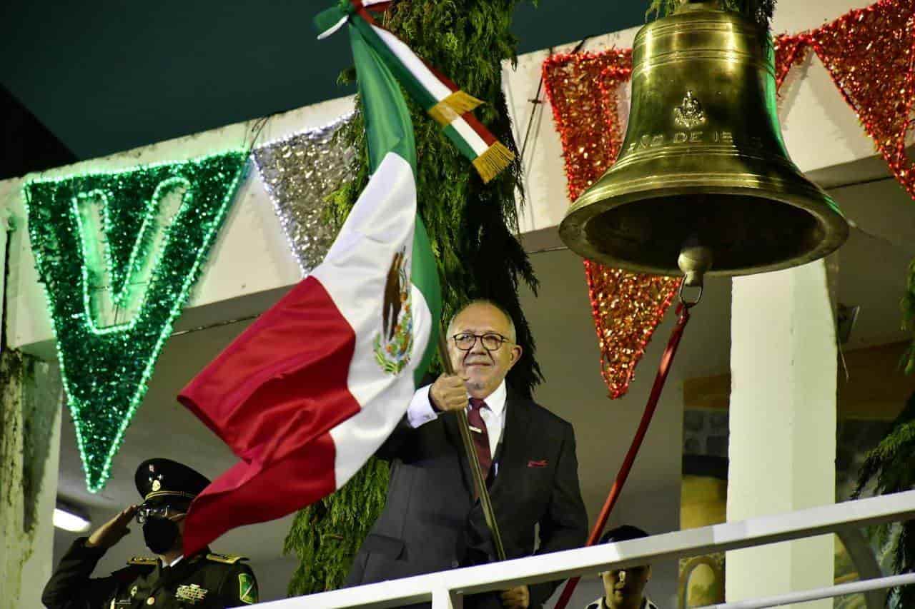 Como parte del acto cívico, Benítez Torres tocó la campana que fue colocada en el pasillo del segundo piso al interior el Ayuntamiento, ondeó la bandera de México, entonó el himno nacional e hicieron una demostración de juegos pirotécnicos.