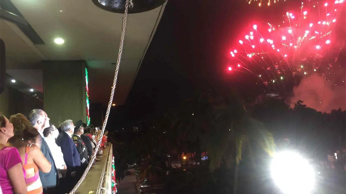 Al son del Himno Nacional y acompañado de familiares y parte del gabinete que lo acompañó durante casi cinco años, el gobernador izó la bandera de México y para amenizar la fiesta patria las luces de los fuegos artificiales engalanaron la noche.