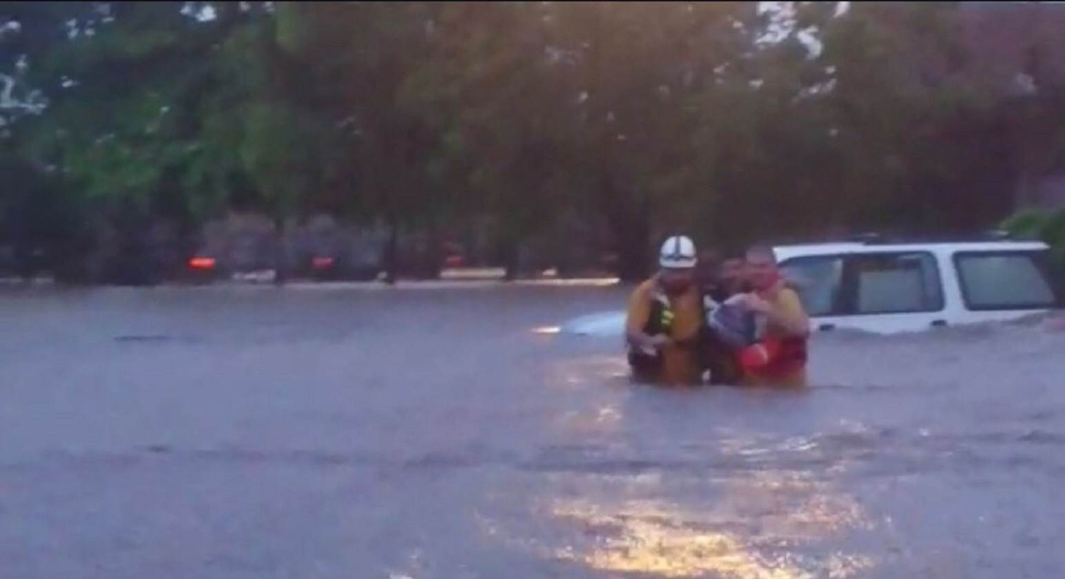 En las imágenes se puede observar que el hombre quedó atrapado aparentemente en su camioneta pues el agua de las lluvias subió a más de la mitad del vehículo.