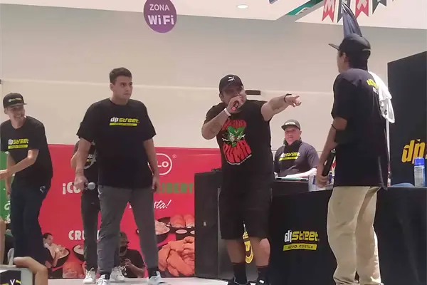 Mauricio, nombre real del artista, arribó al escenario de una plaza comercial junto a otros dos freestylers locales: Demoan y Hazard, con quienes tuvo dos batallas de improvisación en duelos de 4 x 4 en 120 segundos.