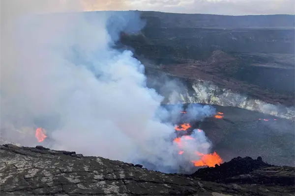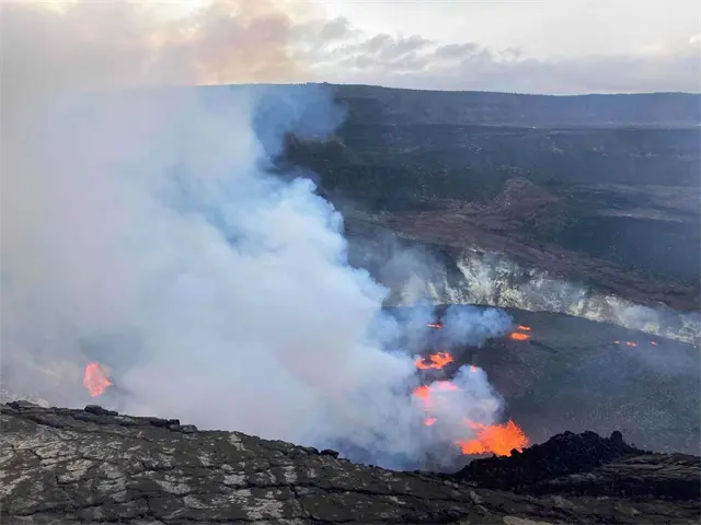 La erupción está por el momento concentrada en el cráter Halemaumau, dentro del Parque Nacional Volcanes de Hawái y lejos de zonas habitadas.