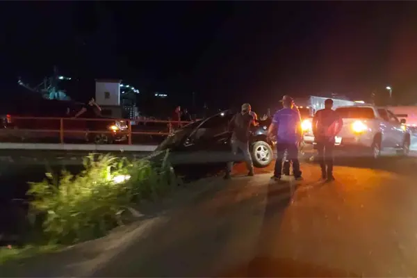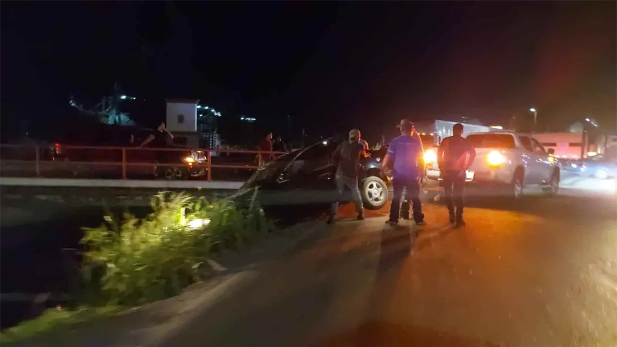 Un susto y daños materiales de consideración dejó un accidente automovilístico, tipo canalazo, la noche de este domingo, en las intersecciones de las carreteras Lateral 18 y México 15.