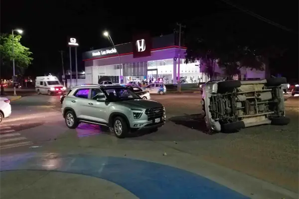 El otro accidente se registró casi simultáneamente, pero en el cruce del bulevar Rosendo G. Castro y la calle Vicente Guerrero en las inmediaciones del sector centro de la ciudad, justo en la esquina del museo Trapiche; dejó como saldo una camioneta volcada, una más con daños materiales y el carro presunto responsable también chocado.