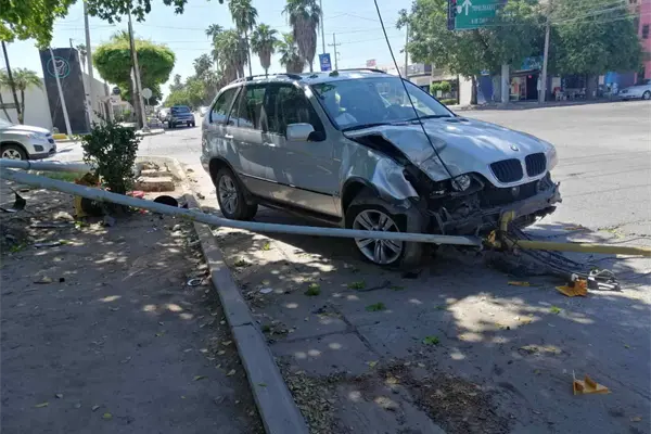 La información indica que el conductor de una camioneta modelo reciente, de la marca BMW, color gris, circulaba de poniente a oriente sobre la Madero, pero al llegar al bulevar, presuntamente se le atrevesó un vehículo que se pasó la luz del semáforo en ámbar, por lo que al intentar esquivarlo, chocó con un semáforo, al cual derribó y le cayó encima a la camioneta.