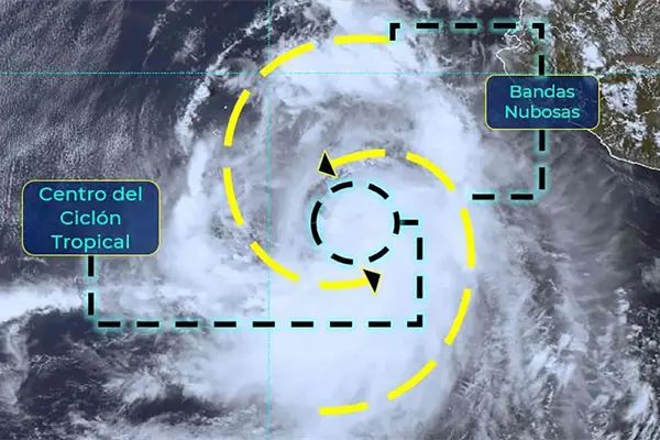 El centro de este fenómeno se localiza a 220 km al sur-sureste de Cabo San Lucas, BCS.
