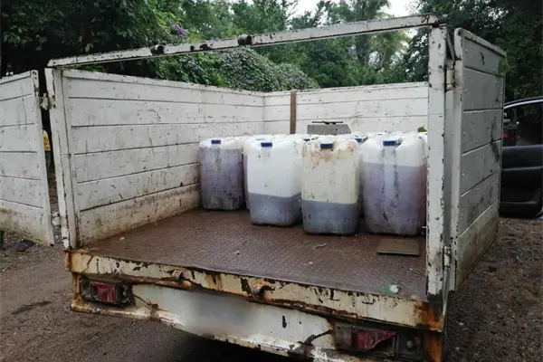 Al aproximarse notaron que efectivamente no había ningún civil en el lugar, y descubrieron que en la parte trasera de la camioneta se trasladaban varios bidones con líquido de color café en su interior, al parecer sustancias nocivas para la salud.