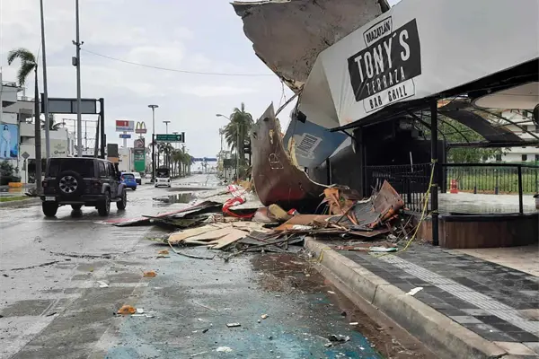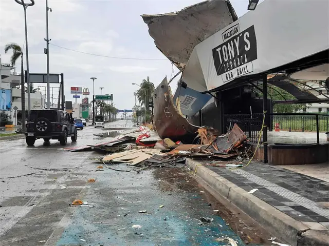 Anuncios en el piso, espectaculares destrozados, postes y árboles derrumbados, así como daño en comercios de menor a mayor intensidad ocasionaron los fuertes vientos de «Pamela» en Mazatlán.