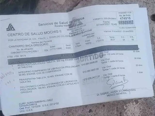 «Vinieron varias señoras y me trajeron esas cajitas, es pravastatina y me habló otra señora que me dará ese mismo también, pero del otro medicamento no me han mandado, no tengo nada del otro se llama ardosons, ese trae otro combinado, pero vienen diferentes las cajitas, ese es para dolor y para desinflamar porque tengo desgaste de los huesos y las rodillas», asentó.