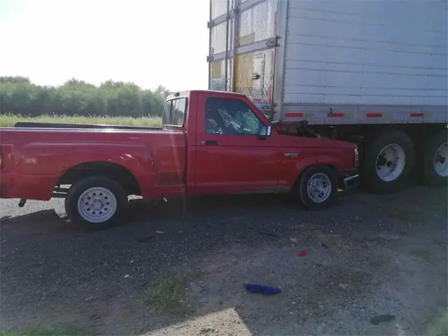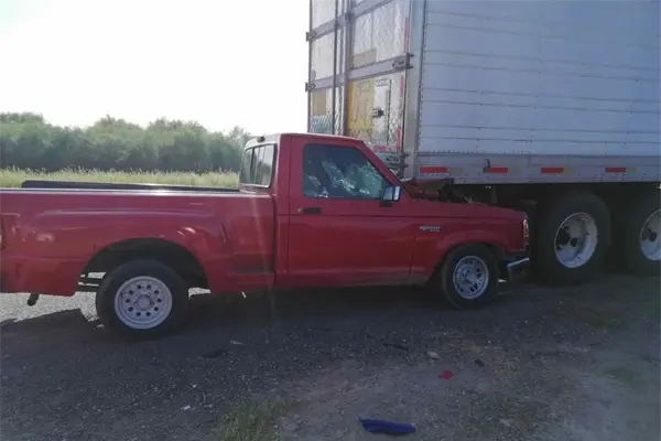El accidente se registró a las 16:00 horas de este martes, sobre los carriles de sur a norte de la rúa federal México 15, a la altura del kilómetro 4, justo a un costado de conocido motel y del retorno al ejido Compuertas. Los vehículos protagonistas del incidente fueron una camioneta Ford Ranger, color rojo, con caja californiana y un tractocamión kenworth, color blanco que transportaba comida congelada.
