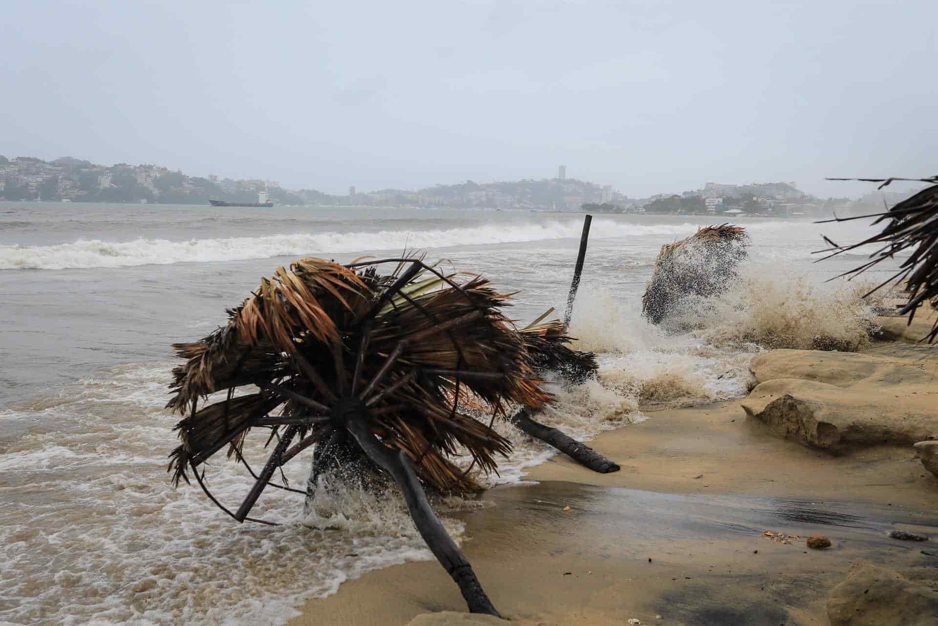 Además de rachas de viento de 100 a 120 km/h y oleaje de 5 a 7 metros de altura significativa en el litoral de Michoacán y Guerrero, y ráfagas de 60 a 70 km/h con olas de 1 a 3 metros de altura en costas de Jalisco, Colima y Oaxaca.