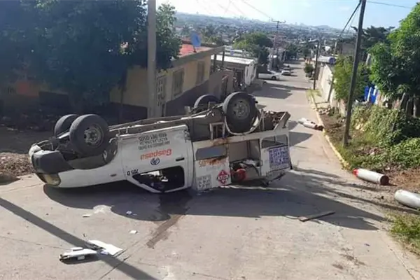 Vuelca camioneta repartidora de gas en Mazatlán