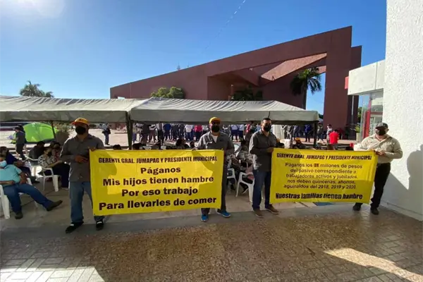 >Exigen cubrir los 31 millones de pesos que adeudan en pagos a los trabajadores.