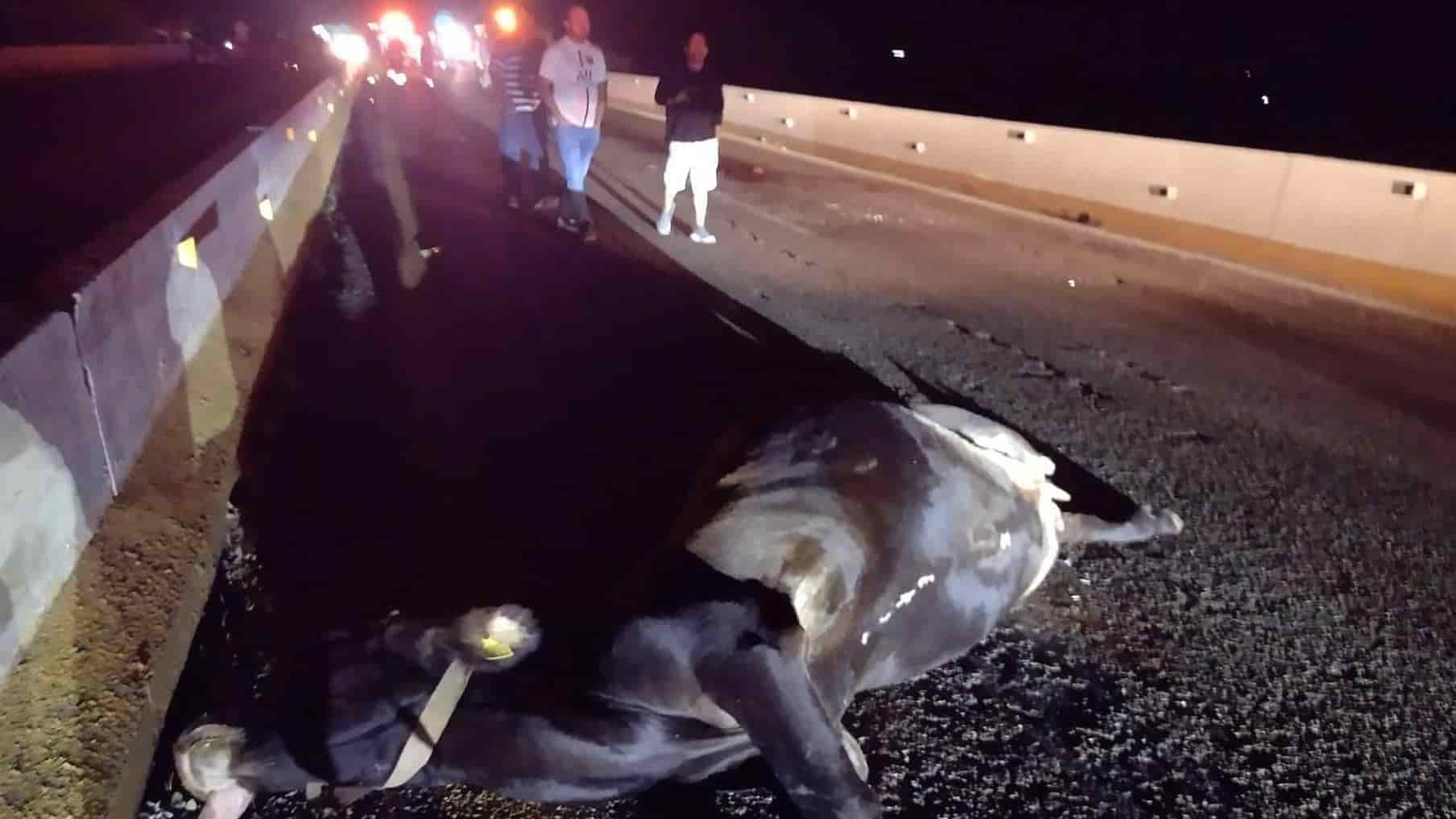 Dos vacas que deambulaban sin control y sueltas sobre la autopista Benito Juárez, mejor conocida como «La Costera», en el municipio de Angostura provocaron tremendo accidente entre tres vehículos. Pese a lo aparatoso de los hechos y los daños materiales, por fortuna no hubo personas con lesionadas de consideración.