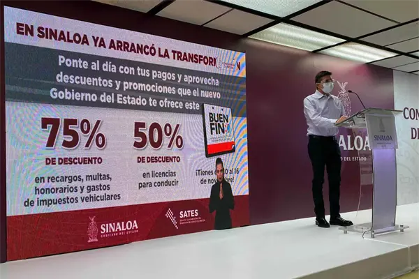 En el marco al «fin de semana más barato del año», el Director del Servicio de Administración Tributaria del Estado de Sinaloa (SATES), Óscar Luis López Barraza, anunció que del 10 al 16 de noviembre habrá del 75 al 50 % de descuentos en los trámites vehiculares.