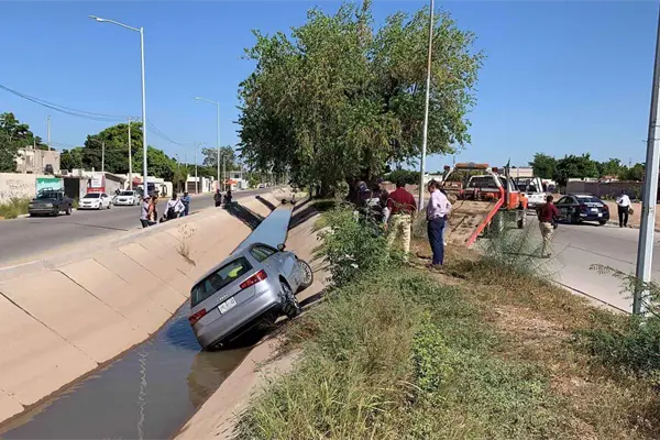 El accidente se registró alrededor de las 11:40 horas de este miércoles, en el Dren pavimentado del bulevar Canuto Ibarra, casi esquina con bulevar Pedro Anaya, justo en la entrada del fraccionamiento Álamos Country.