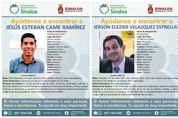 Para ambos casos, la Comisión Estatal de Búsqueda de Personas en Sinaloa emitió una ficha para dar con los paraderos, para cualquier información se proporcionó el teléfono 667 184 1256.