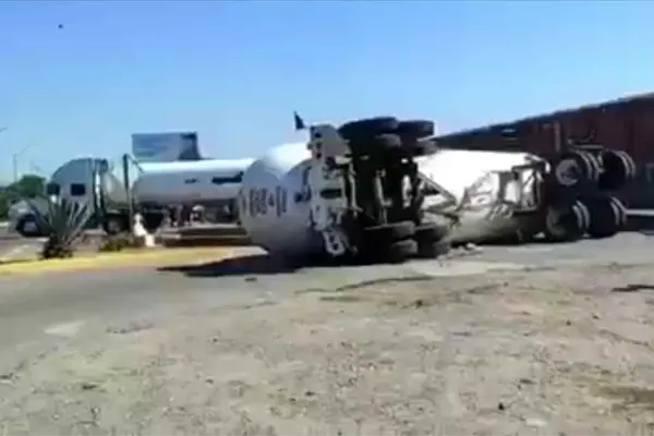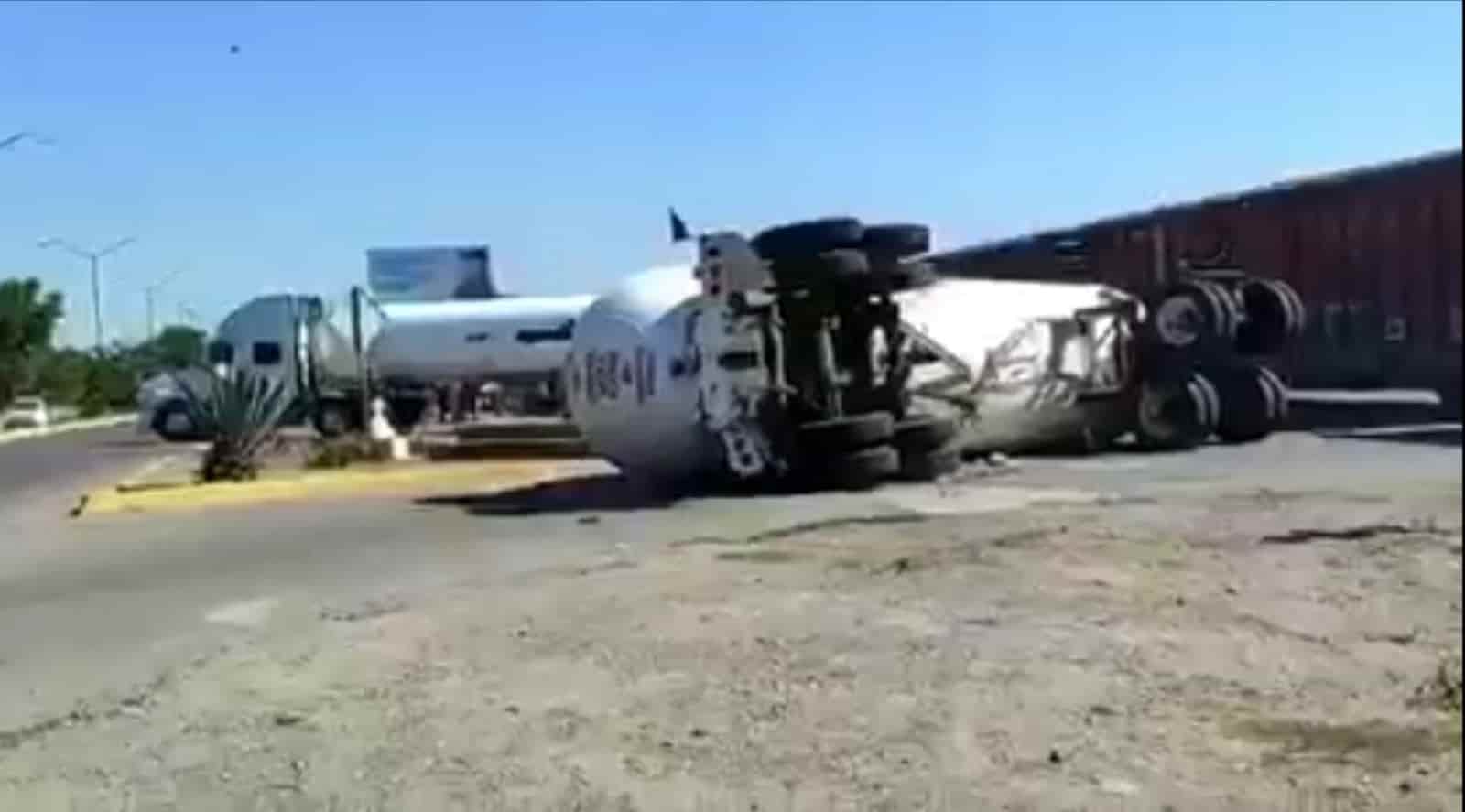 Tren arrolla tráiler que transportaba cisternas de amoniaco en La Cruz de Elota