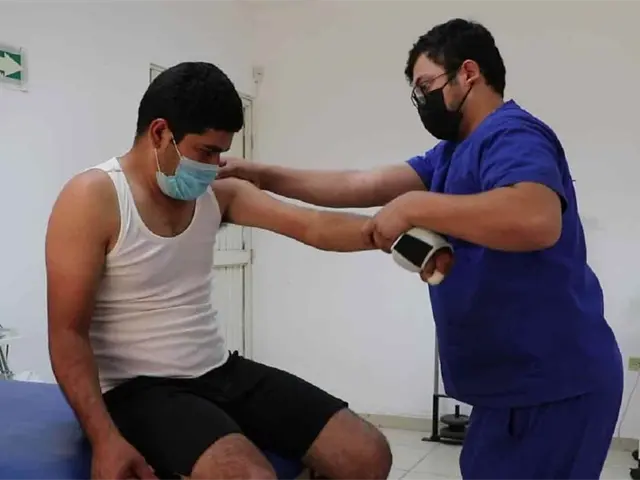 Fue Don Luis Ángel Valdez Apodaca, de oficio ejidatario, quien buscando opciones junto con su esposa se informó sobre la atención que brindan las seis Unidades Básicas de Rehabilitación (UBR) a cargo de DIF Ahome, hace unos días, al acudir a la que se ubica en Higuera de Zaragoza, constató en las primeras terapias que su hijo poco a poco empezaba a recuperar fuerza y movilidad en su cuerpo con el apoyo del personal que ahí labora.