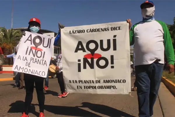 Colectivo «Aquí no» marcha previo a consulta sobre la planta de fertilizantes