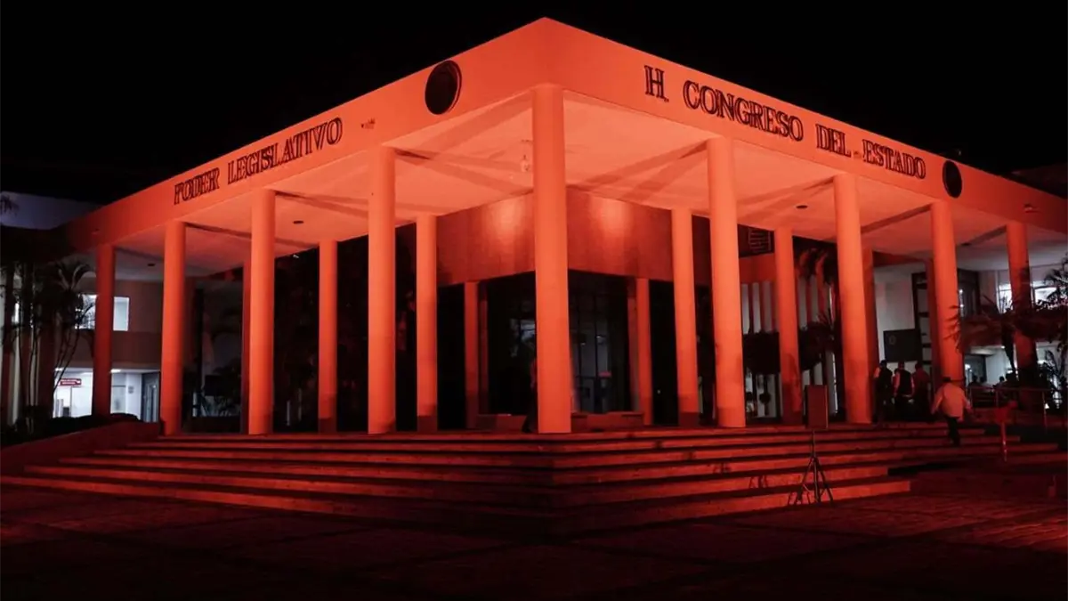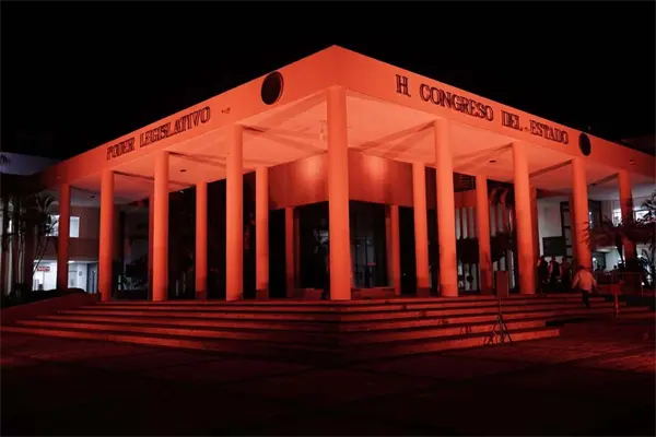 La noche de este jueves el Congreso del Estado iluminó de naranja su edificio, esto en el marco del Día Internacional de la Eliminación de la Violencia Contra la Mujer.