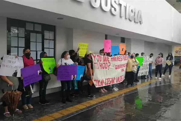 Familiares y amigos del expolicía Julio César Valdez Valdez protestaron, al mediodía de este viernes, en las oficinas de la Vicefiscalía de Justicia de la Zona Norte de Sinaloa.