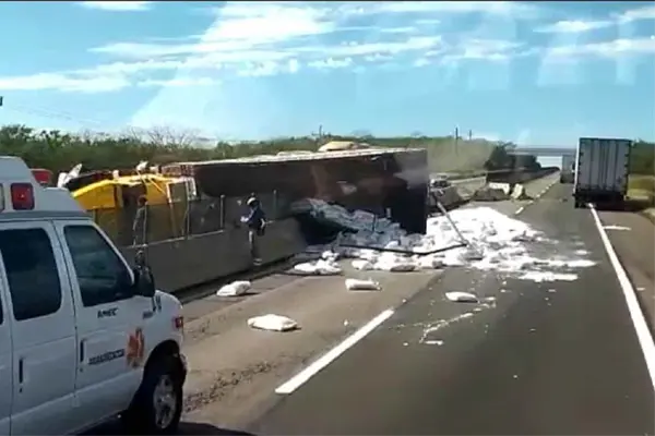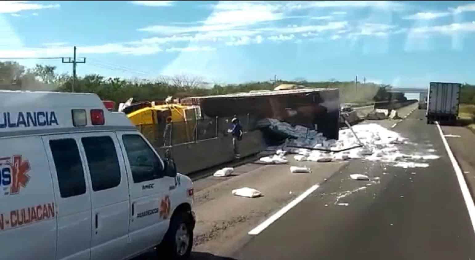 Vuelca tráiler cargado de harina en la autopista Mazatlán-Culiacan