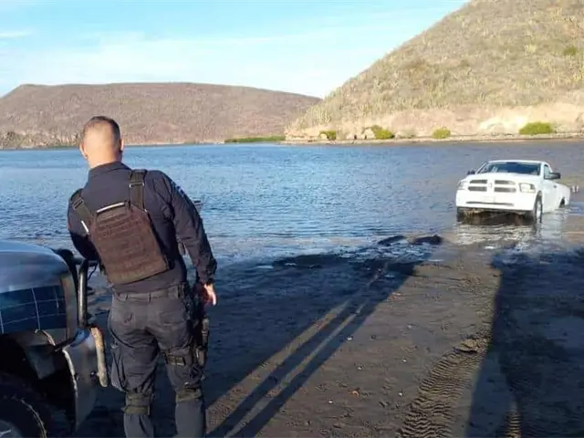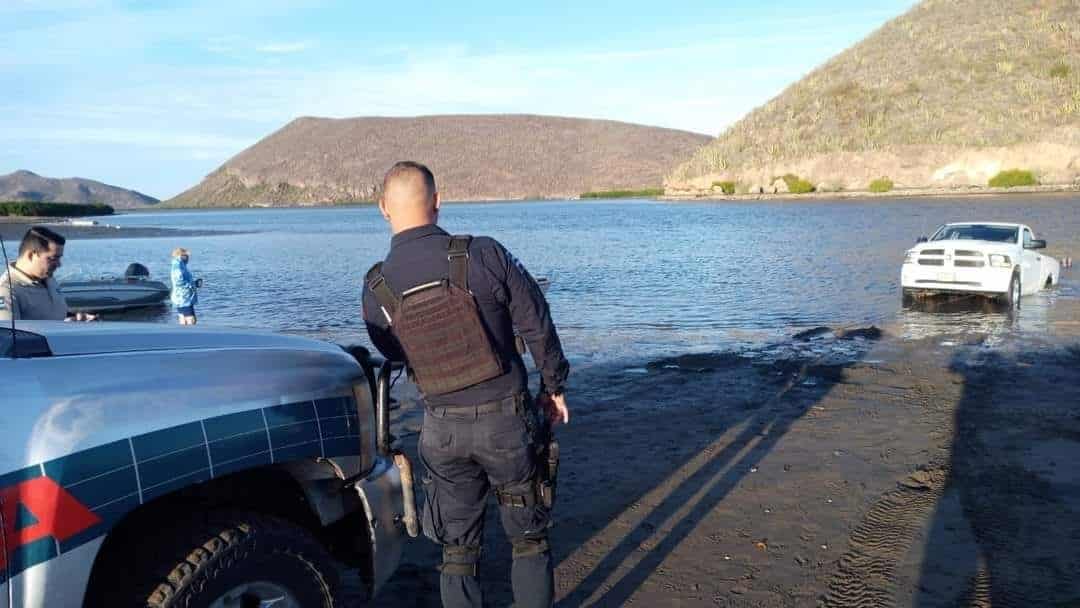 Lo que comenzó como unas maniobras para transportar una lancha, terminó con gritos de auxilio para la Policía Turística de Ahome, luego que una camioneta fue arrastrada por la corriente hacia el canal profundo en la playa de El Maviri, la cual lograron rescatar.