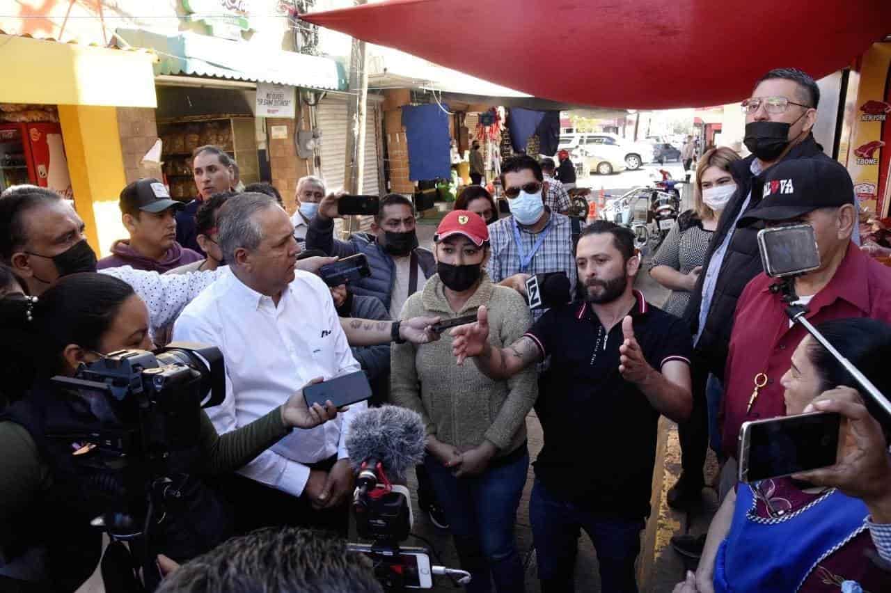 El alcalde fue al lugar desde la avenida Gabriel Leyva hasta la calle Guillermo Prieto, siendo abordado por locatarios de los mercados Juárez y Popular, encontrando opiniones divididas en torno a la posible apertura al tránsito vehicular en esa zona.