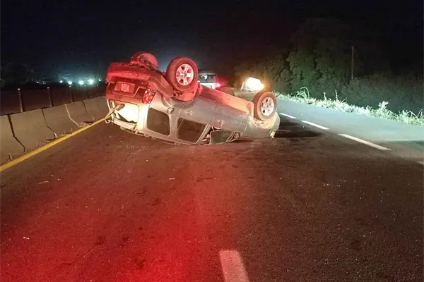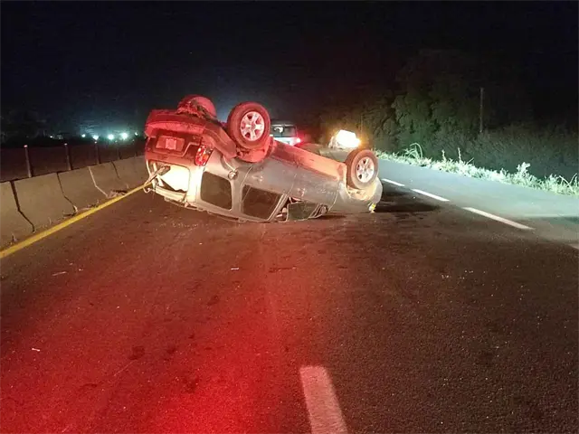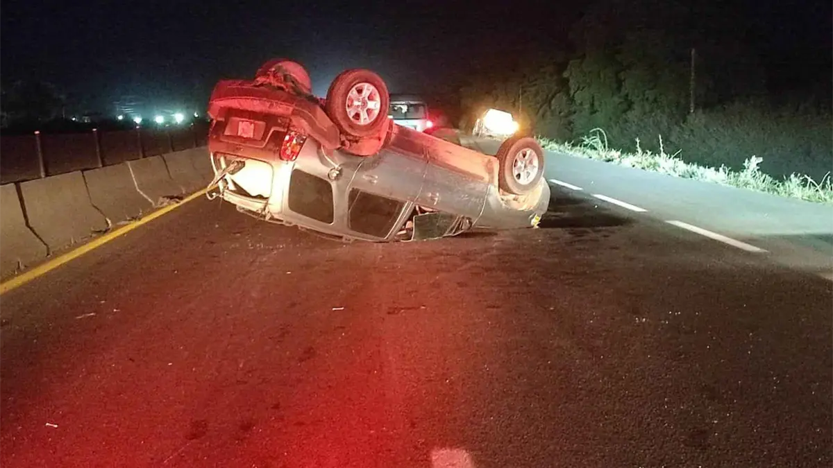 Un choque por alcance en la carretera internacional México 15, terminó en volcadura, la noche de este martes, y pese lo aparatoso del accidente, por fortuna, solamente hubo daños materiales ya que los tres ocupantes de ambos vehículos resultaron con lesiones menores.