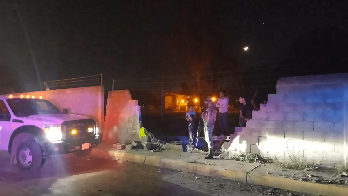 Jóvenes pierden el control de su automóvil y tumban barda de complejo militar, en Culiacán