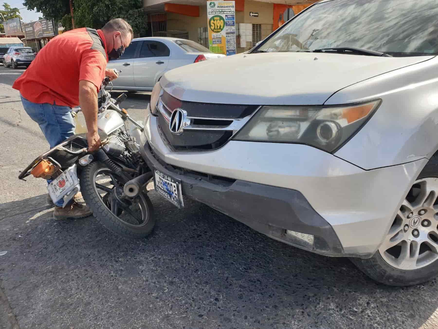 Un motociclista resultó herido, el mediodía de este miércoles, tras sufrir un accidente en el Centro de la ciudad de Guamúchil, del municipio de Salvador Alvarado.