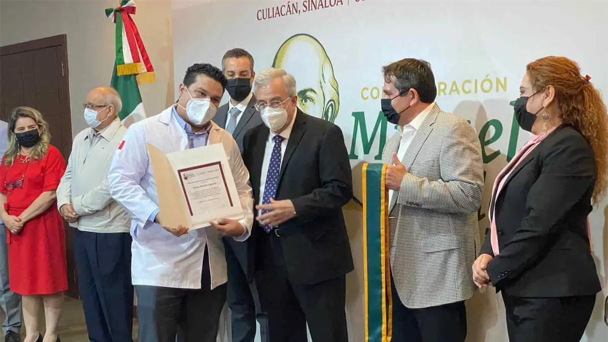 Ante su labor durante la pandemia del Covid-19, el gobernador Rubén Rocha Moya entregó la medalla Miguel Hidalgo a enfermeras y médicos de Sinaloa, acompañado por el Secretario de Salud, Héctor Melesio Cuén Ojeda.