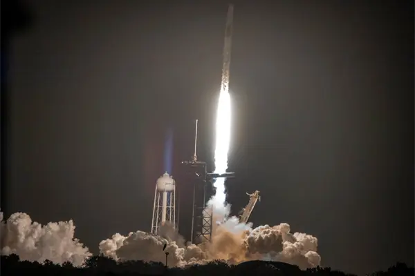La nave fue propulsada por un cohete Falcon 9 de SpaceX que despegó con éxito a la 1.00 EST (6.000 GMT) desde el Centro Espacial Kennedy, en el centro de Florida.