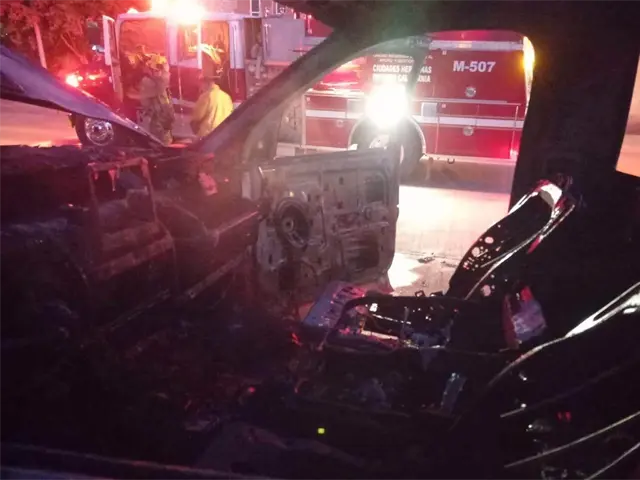 Se incendia camioneta en la Insurgentes, en Guamúchil