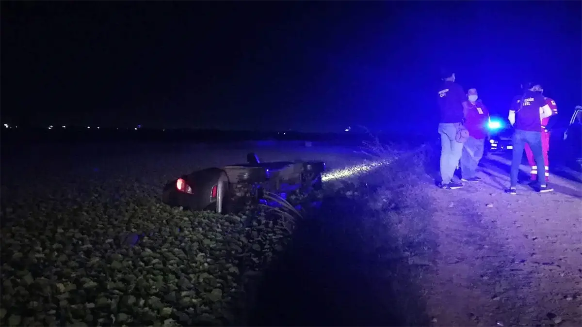 Joven cae en su vehículo a canal del ejido Flores Magón, Ahome