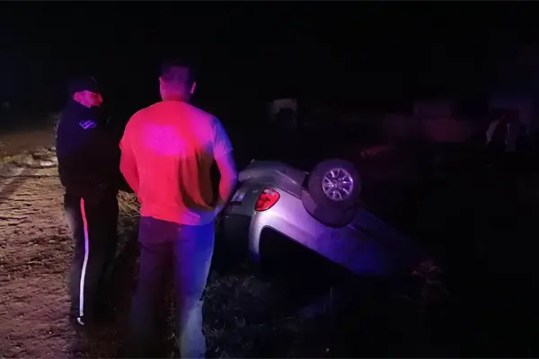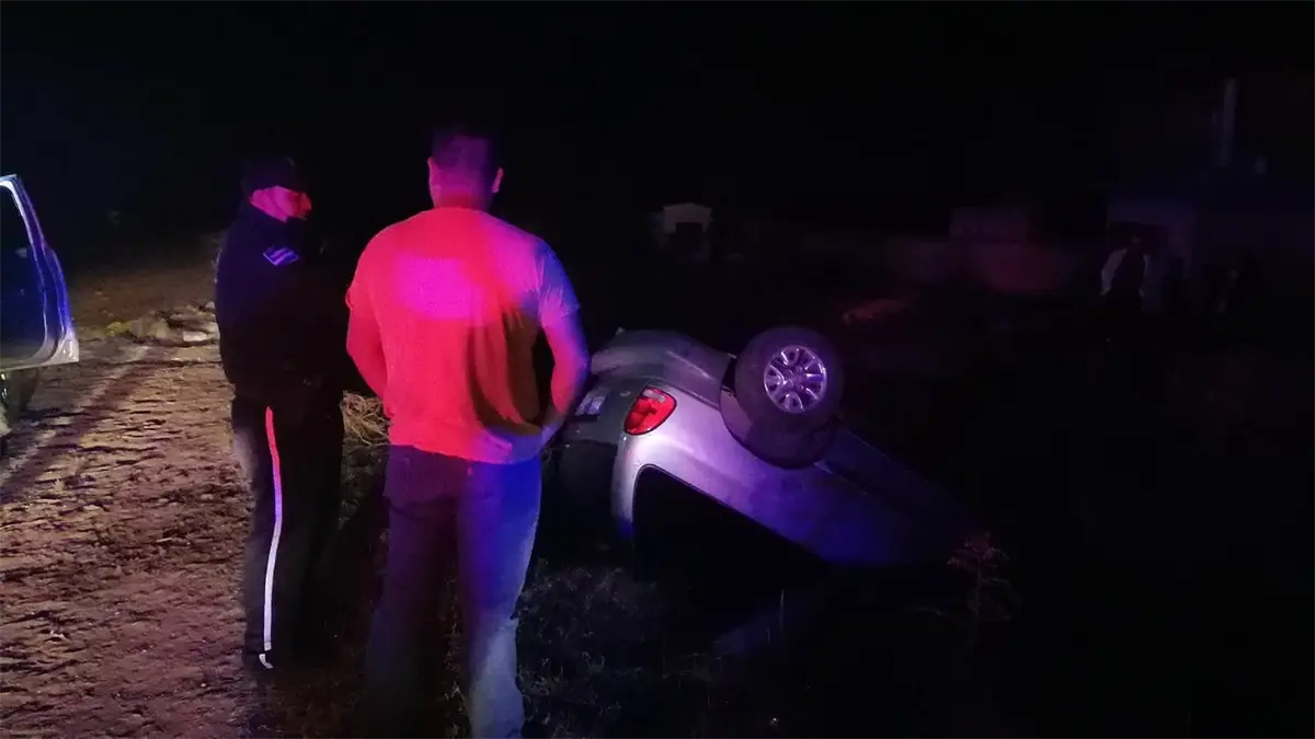 En el accidente, la unidad del conductor quedó con los neumáticos hacia arriba debido a la volcadura.