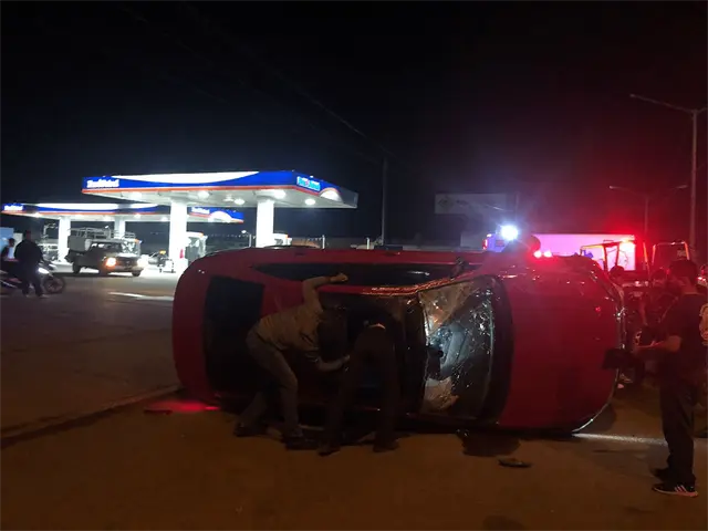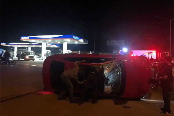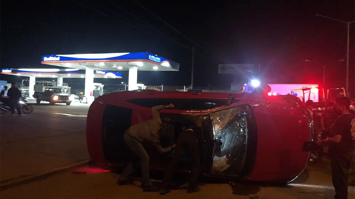 Una mujer, vecina de Valles del Ejido, perdió el control de su vehículo y volcó frente a una gasolinera en la avenida principal de Villa Union.