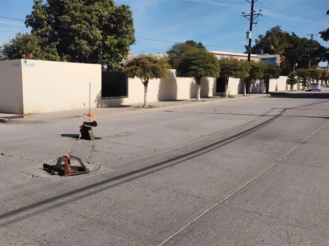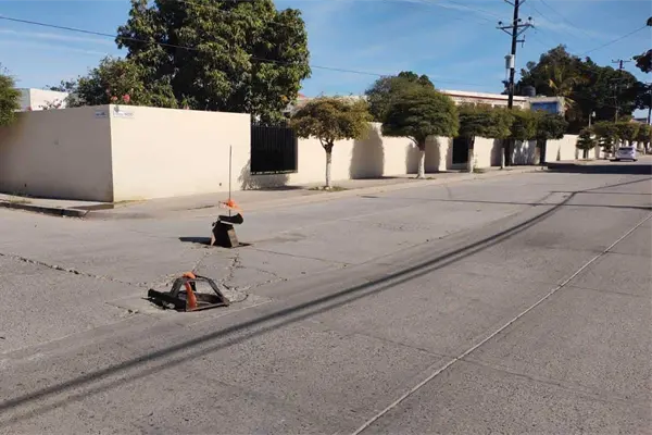 Doble alcantarilla abierta, un riesgo para peatones y carros en Los Mochis