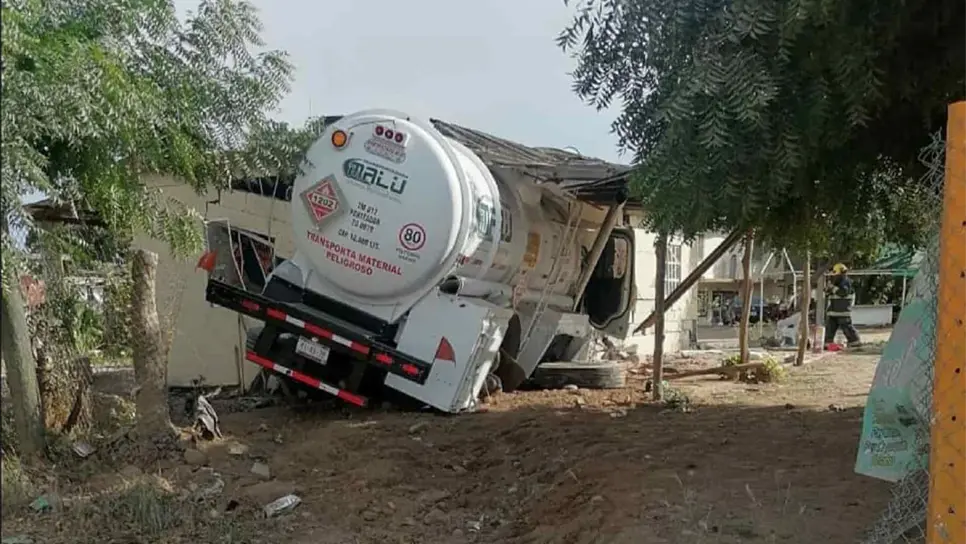 El percance ocurrió cuando la pipa cargada de diésel circulaba sobre la carretera Culiacán-Eldorado y, en la comunidad de Las Piedritas, presuntamente chocó por alcance contra una camioneta y, posteriormente, se fue de frente contra la casa construida de blocks, la cual fue destruida de la parte del frente.
