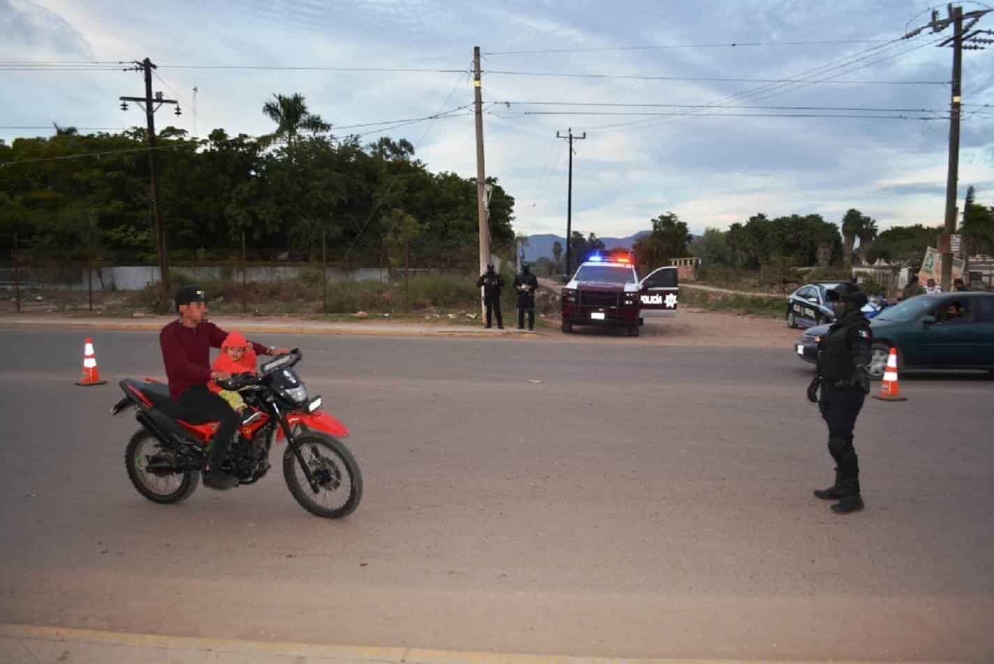 Policías Preventivos, el Grupo de Operaciones Tácticas Especiales Rural (GOTER), Tránsito Municipal y en coordinación con los agentes encargados de las sindicaturas de Higuera de Zaragoza, Ahome, Central Mochis, colocaron puntos de revisión a la entrada de la Villa de Ahome, ruta de motociclistas, quienes hacían parada obligatoria para verificar que cumplieran con el reglamento de Tránsito.