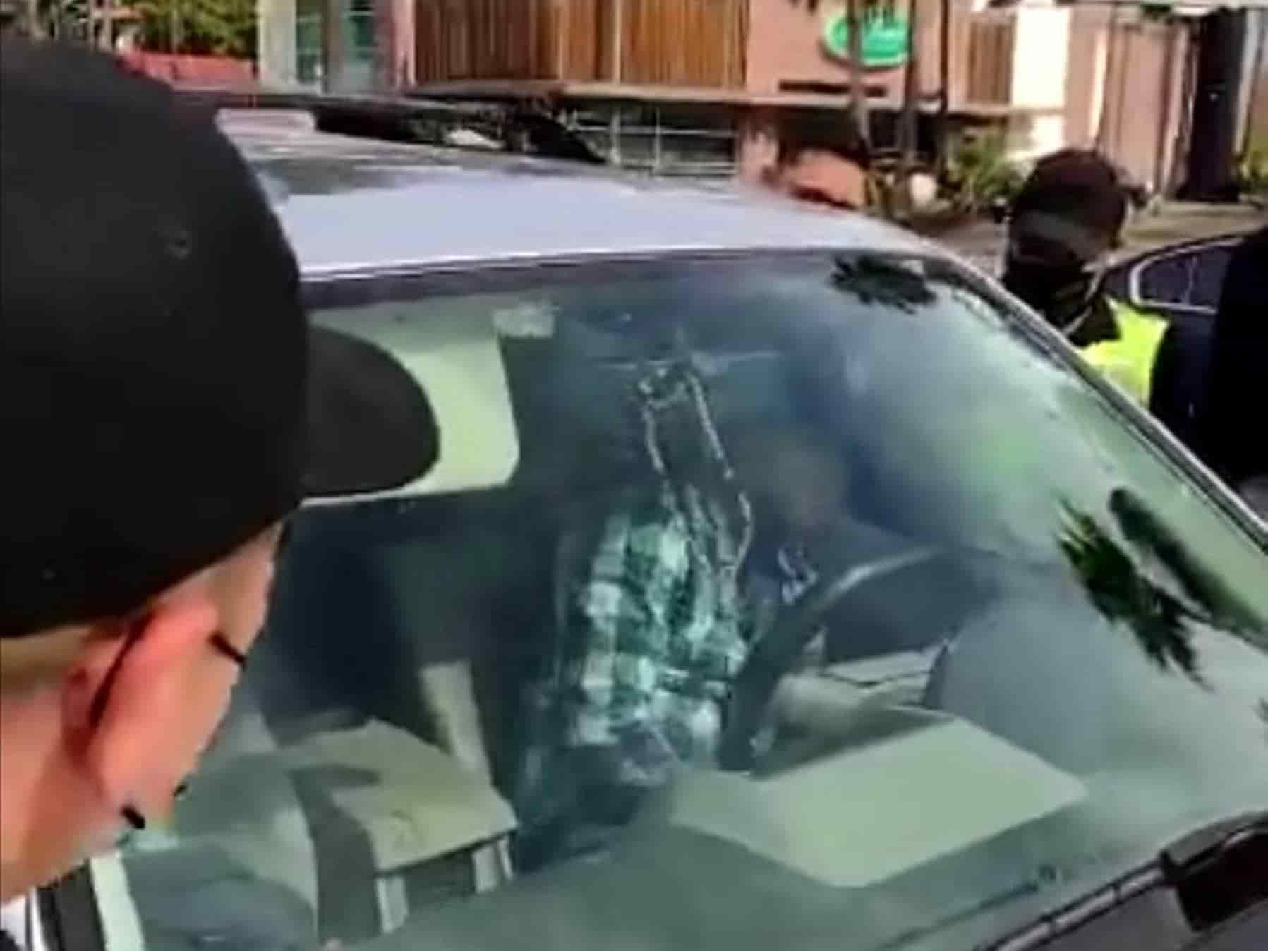 Según un video viral en redes sociales, el joven fue captado dormido al interior de una vagoneta color gris sobre el bulevar Antonio Rosales y Rosendo G. Castro, con dirección al sur.