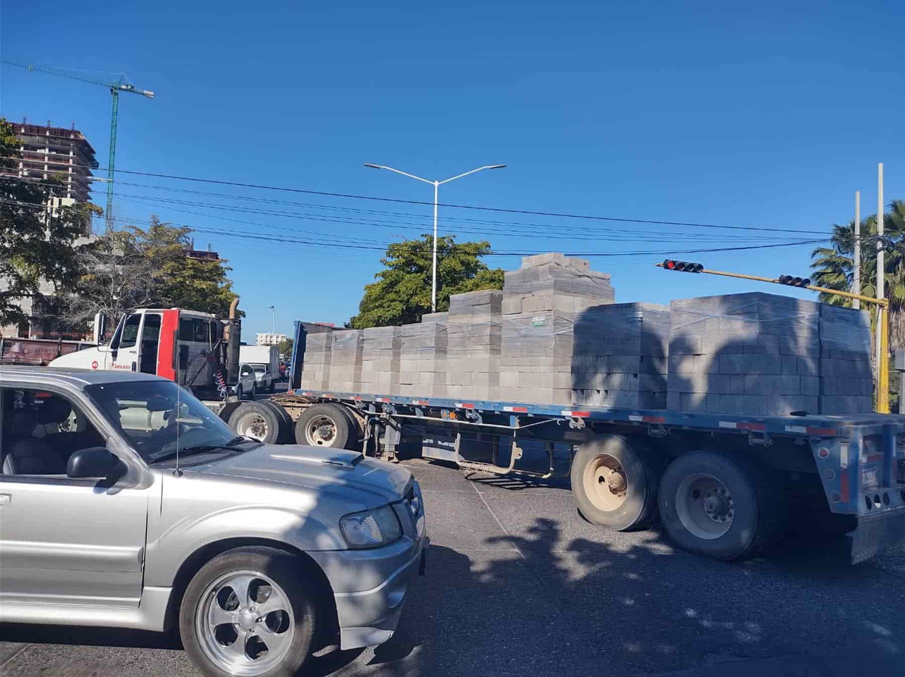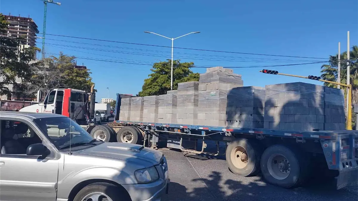 Se desprende caja de tráiler cargada de blocks y bloquea el bulevar Sánchez Alonso