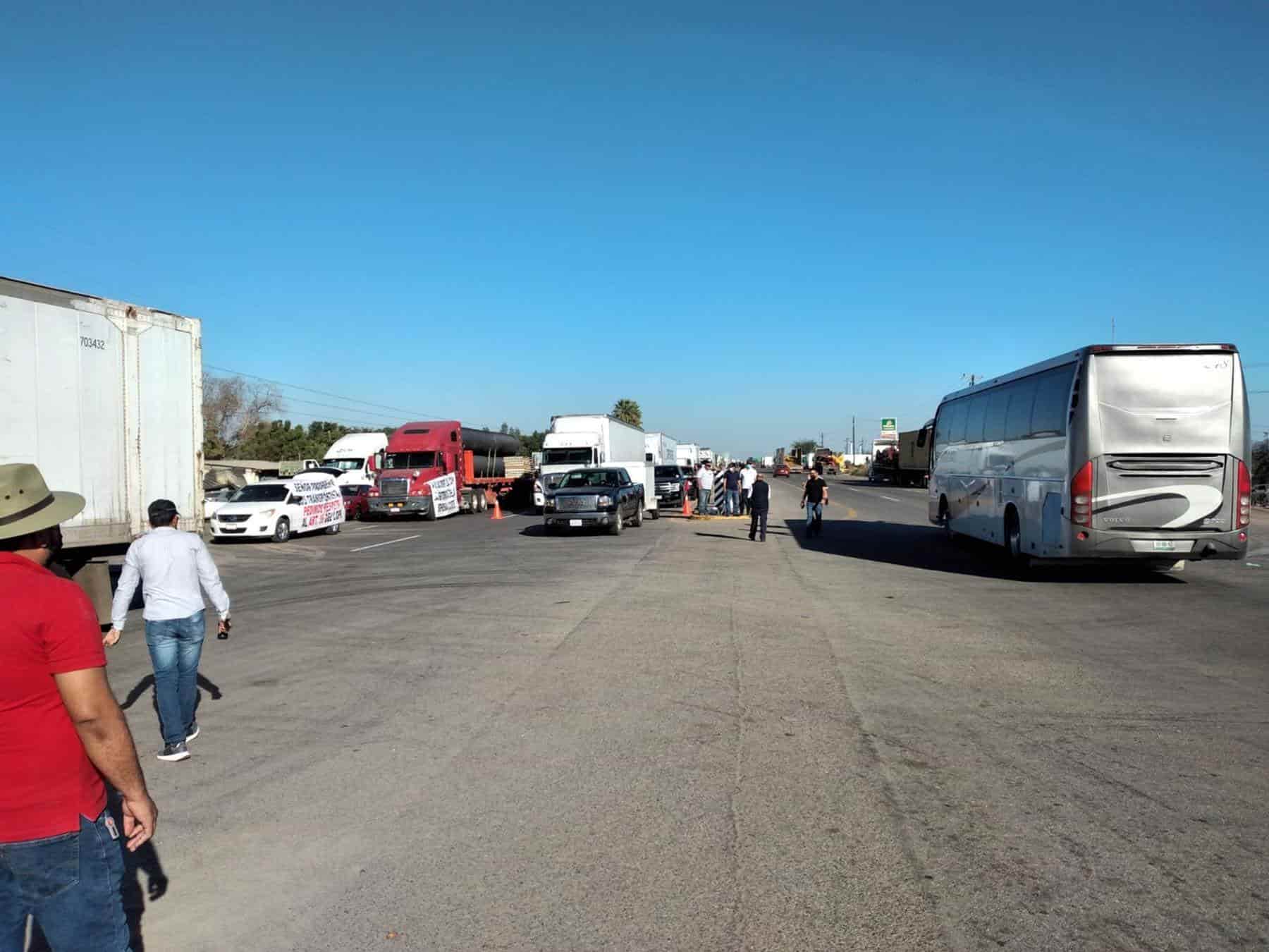 Transportistas bloquean la México 15 en Las Brisas, Guasave