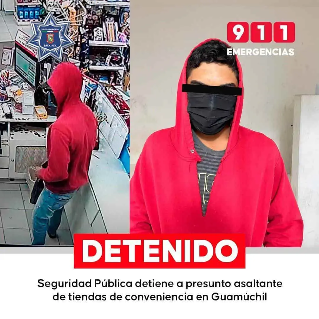 Elementos de la Dirección de Seguridad Pública de Salvador Alvarado detuvieron a un presunto asaltante de una tienda Oxxo en la colonia del Évora, informó Juan Carlos Barraza Morales.