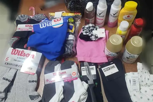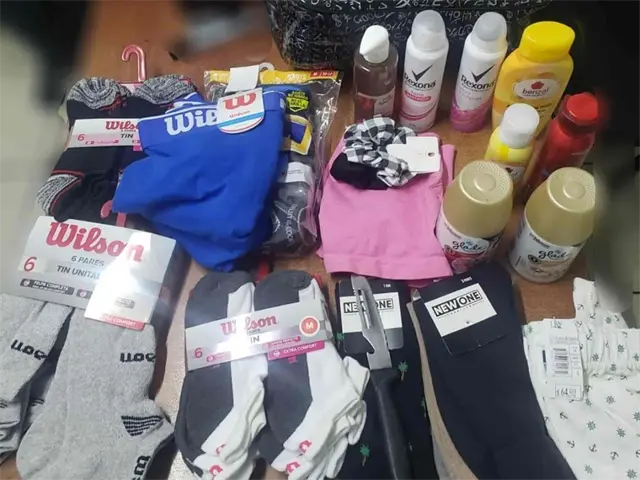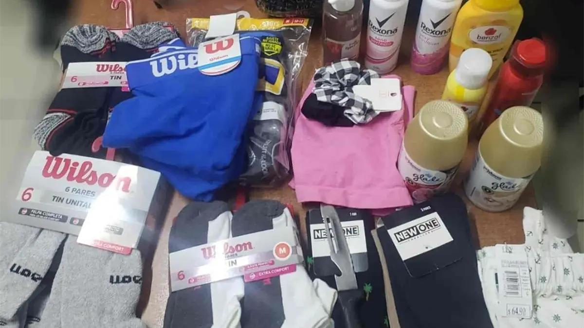 Elementos de seguridad pública habían sido notificados de la situación y, cuando arribaron, aseguraron a la joven para después encontrarle entre sus pertenencias 2 antitranspirantes, un body spray, un gel facial, un shampoo íntimo, un desodorante en spray, dos aromatizantes en aerosol, 22 pares de calcetines, 8 boxers y un juego de ligas.