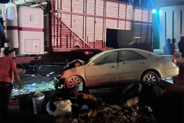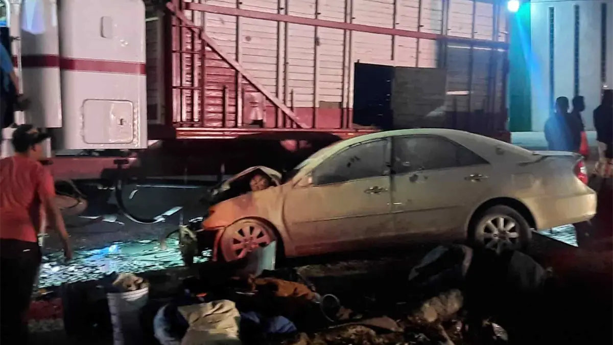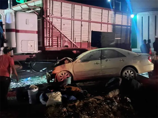 El conductor de un vehículo Toyota Camry, de color gris, tuvo que ser llevado a un hospital tras chocar contra una unidad de carga, tipo torton, sobre el Libramiento Sur Benito Juárez, La Costerita, en Culiacán