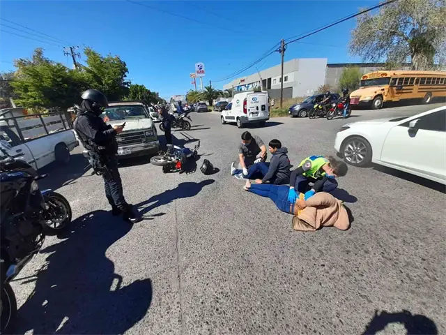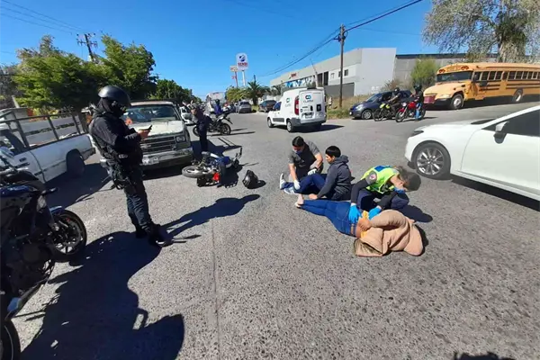 El incidente se registró esta tarde sobre el bulevar 10 de Mayo y la calle Ángel Flores, en la colonia Jiquilpan; entre una motocicleta Italika, de color azul, modelo 2019, sin placas de circulación y una camioneta pick-up modelo 1990, de color verde, con placas de circulación UK-820-89 del estado de Sinaloa.